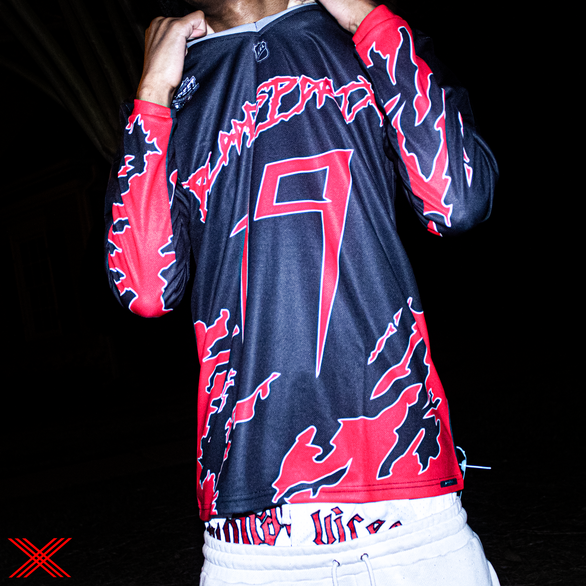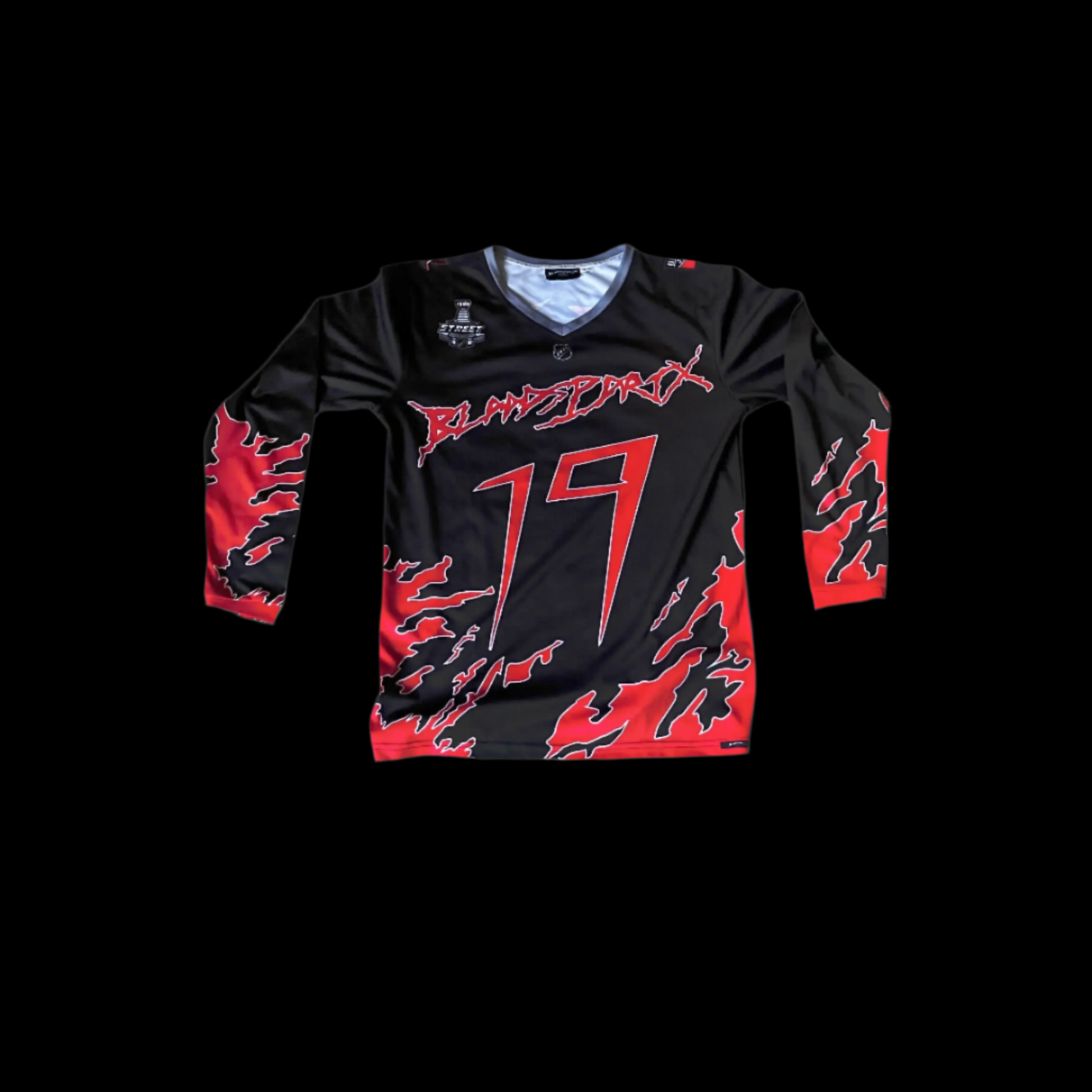 Long Sleeve ATL BLOOD/FLAME based Gray Neckline High End-100% Polyester comfortable Breathable Dry Fit Unisex BMX Jersey.